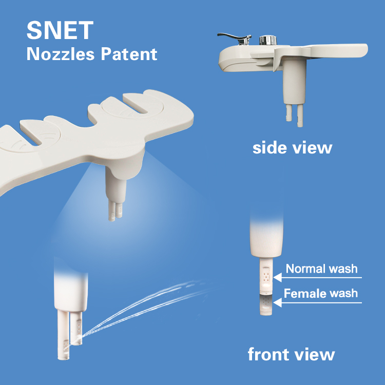Compared to old design of left-right nozzles, our SENT patent designs provide more accurate and comfortable water sprays.
